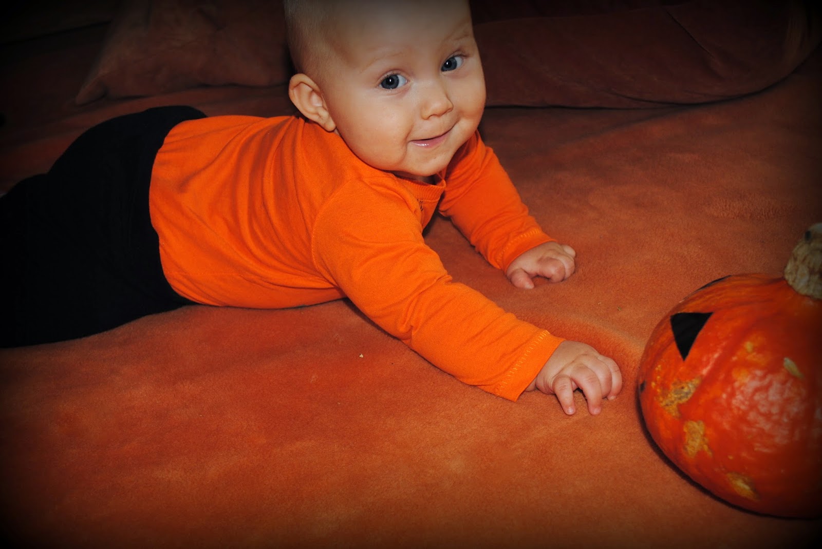 Ponadto obdarowana przez Olgę z Instytutu Doświadczeń tematycznym bodziakiem dla Mill nie mogłam się oprzeć małej pierwszo-millo-halloweenowej sesji z dynią, no po prostu nie mogłam. Uwielbiam patrzeć na te zdjęcia i już z tyłu głowy myślę o bożonarodzeniowych. W gruncie rzeczy - chyba lubię Halloween. Można je oswoić. I wcale nie jest tak strasznie.